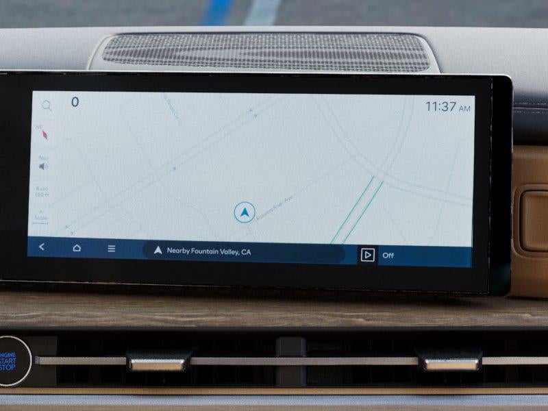 - Radio: AM/FM/HD Bose Premium Audio System -inc: 12 speakers including subwoofer, external amplifier, 12.3" wide touchscreen, Apple CarPlay and Android Auto, Bluetooth® hands-free w/wireless audio streaming, dynamic voice recognition, USB connectivity, SiriusXM, Blue Link+ connected car system, navigation system including traffic flow w/incident data via HD Radio (HERE) and rear seat quiet mode