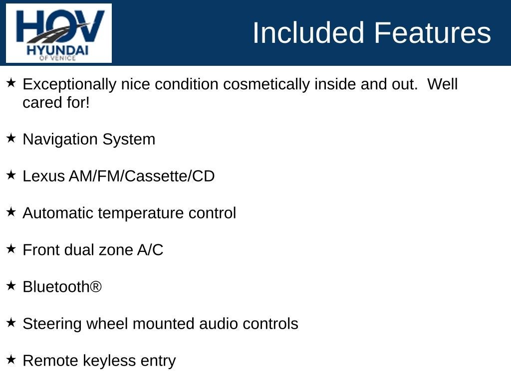 Crystal White 2005 Lexus RX 330 Exceptionally nice condition cosmetically inside and out. Well cared for!, 17 x 6.5 Alloy Wheels, Auto-dimming door mirrors, Auto-dimming Rear-View mirror, Automatic temperature control, Bluetooth®, Delay-off headlights, Dual front impact airbags, Dual front side impact airbags, Front dual zone A/C, Front fog lights, Fully automatic headlights, Knee airbag, Lexus AM/FM/Cassette/CD, Navigation System, Occupant sensing airbag, Overhead airbag, Power driver seat, Rear-View Camera, Remote keyless entry, Steering wheel mounted audio controls.