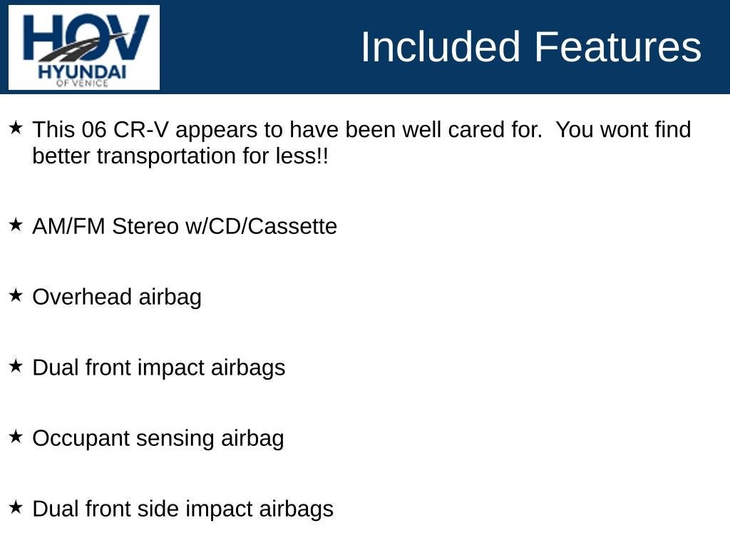 - This 06 CR-V appears to have been well cared for. You wont find better transportation for less!!