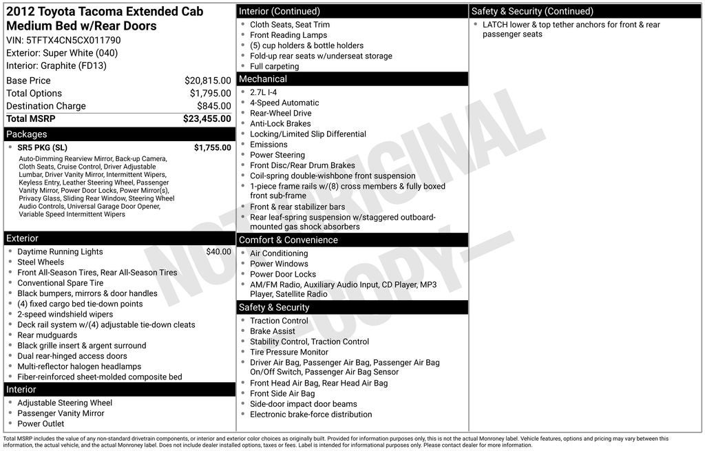 * If you’re looking for a proven pickup that is as capable as it is stylish, the 2012 Toyota Tacoma pickup deserves your full attention. Nearly as capable as a full-size pickup, but without the extra bulk or poor fuel economy, the Tacoma offers a wide selection ranging from everyday work truck to rugged off-road adventurer. Source: KBB.com