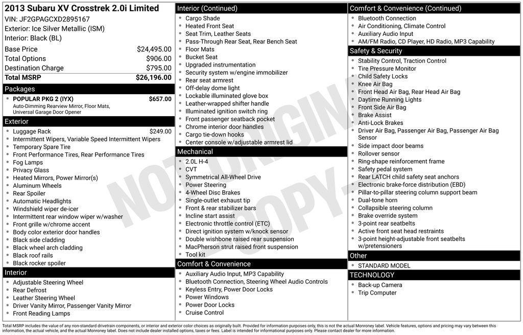 - Vehicle Name: Subaru XV Crosstrek