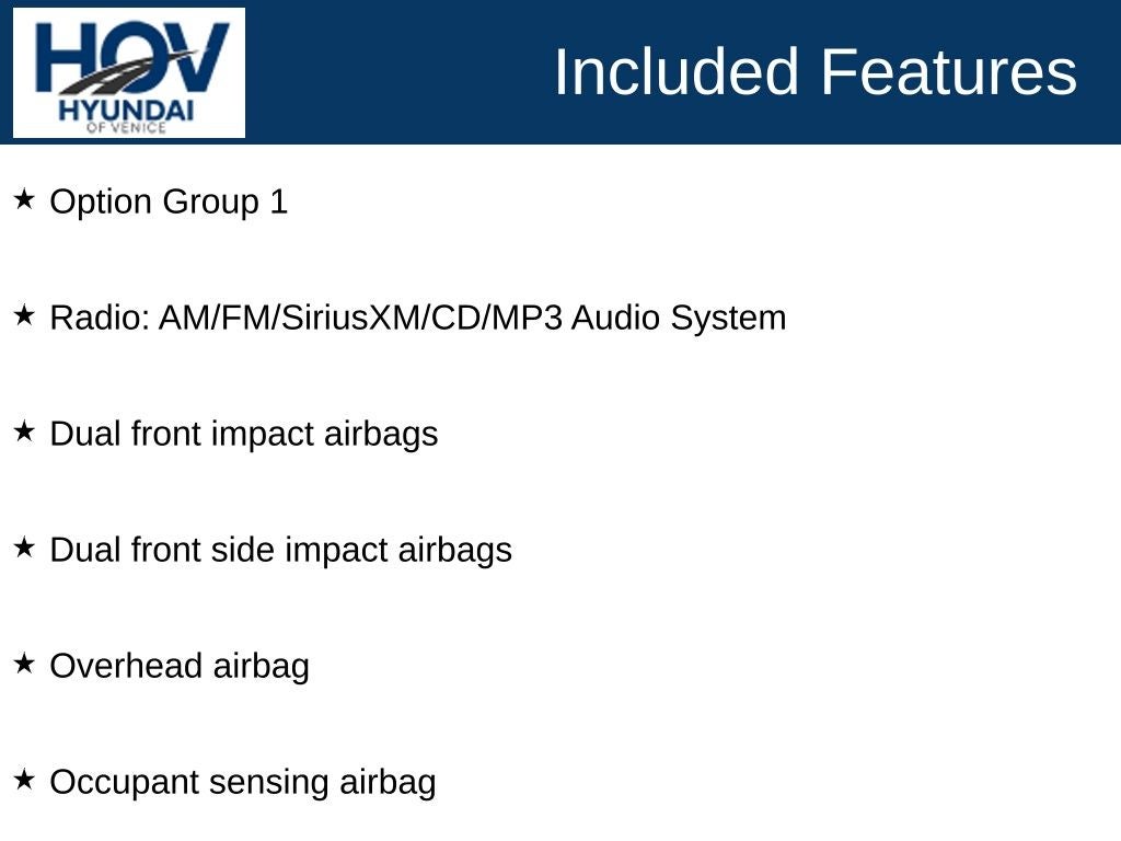 All pricing assumes dealer arranged financing on approved credit. Hyundai of Venice Platinum Protection Plan of $1,295 and $995 CPO Inspection charge (CPO Units only) is not included. Hyundai of Venice also offers various programs periodically, which are mutually exclusive and cannot be combined with other offers. A Dealer Fee of $1299.00, Electronic Titling Fee of $599.95, Private Tag Agency fee of $298.00, and applicable taxes, tags, and government fees are not included in the listed prices. While we strive to represent each vehicle accurately, including color, equipment, and options, we recommend verifying all details before purchase, as we are not liable for errors or omissions. To receive any advertised pricing or specials, a copy of the advertisement must be presented at the time of purchase.