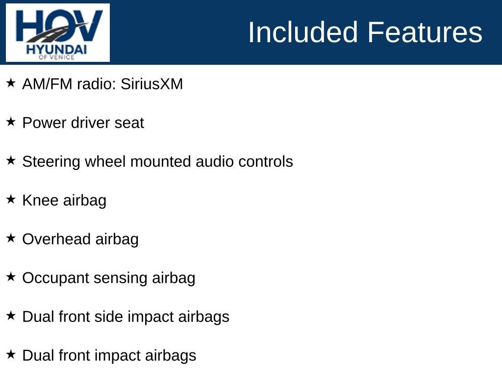 Visit our website at www.hyundaiofvenice.com for full pricing disclosures including required fees. Advertised prices exclude tax, tag, title, registration, and applicable dealer fees, including a $1,299 dealer fee, $599.95 electronic filing fee, and $298 private tag agency fee. Certain vehicles may include optional dealer-installed products or services, such as the Hyundai of Venice Platinum Protection Plan ($1,295). Certified Pre-Owned (CPO) vehicles may also include a $995 certification inspection fee. These items are not included in the advertised price unless otherwise stated and are always optional unless specifically disclosed. Some pricing may reflect available incentives or programs. Not all customers will qualify, and offers may not be combined. Please contact the dealership for complete details and eligibility requirements. While we make every effort to ensure accuracy in vehicle descriptions, pricing, equipment, and availability, we recommend verifying all information with a member of our team prior to purchase, as errors or omissions may occur. All vehicles are offered for immediate sale and are sold on a first-come, first-served basis. Due to high demand, we do not hold used vehicles with deposits. To ensure eligibility for any advertised price or promotion, please reference the specific advertisement at the time of purchase.