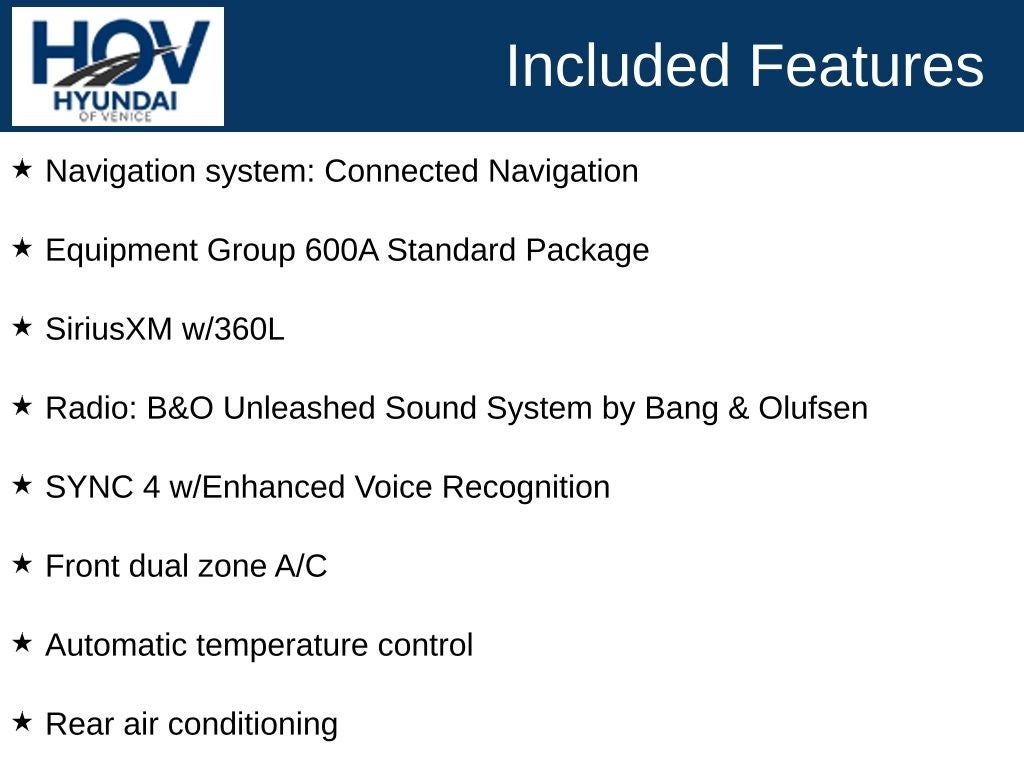- Radio: B&O Unleashed Sound System by Bang & Olufsen -inc: speed-compensated volume, HD Radio, AM/FM stereo, MP3 capability and 22 speakers including subwoofer