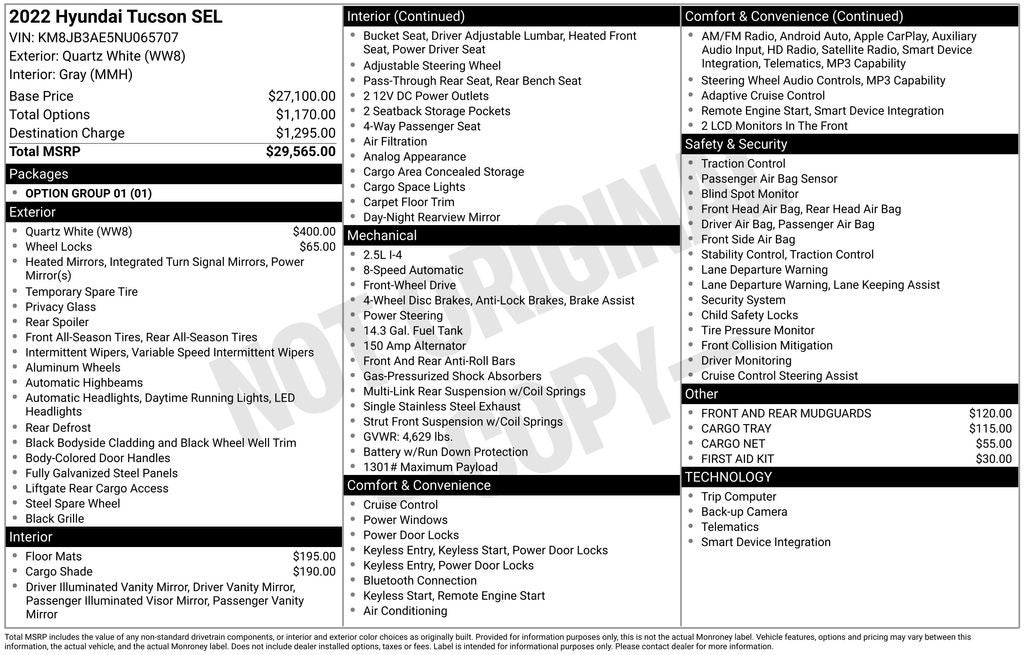 All pricing assumes dealer arranged financing on approved credit. Hyundai of Venice Platinum Protection Plan of $1,295 and $995 CPO Inspection charge (CPO Units only) is not included. Hyundai of Venice also offers various programs periodically, which are mutually exclusive and cannot be combined with other offers. A Dealer Fee of $1299.00, Electronic Titling Fee of $599.95, Private Tag Agency fee of $298.00, and applicable taxes, tags, and government fees are not included in the listed prices. While we strive to represent each vehicle accurately, including color, equipment, and options, we recommend verifying all details before purchase, as we are not liable for errors or omissions. To receive any advertised pricing or specials, a copy of the advertisement must be presented at the time of purchase.