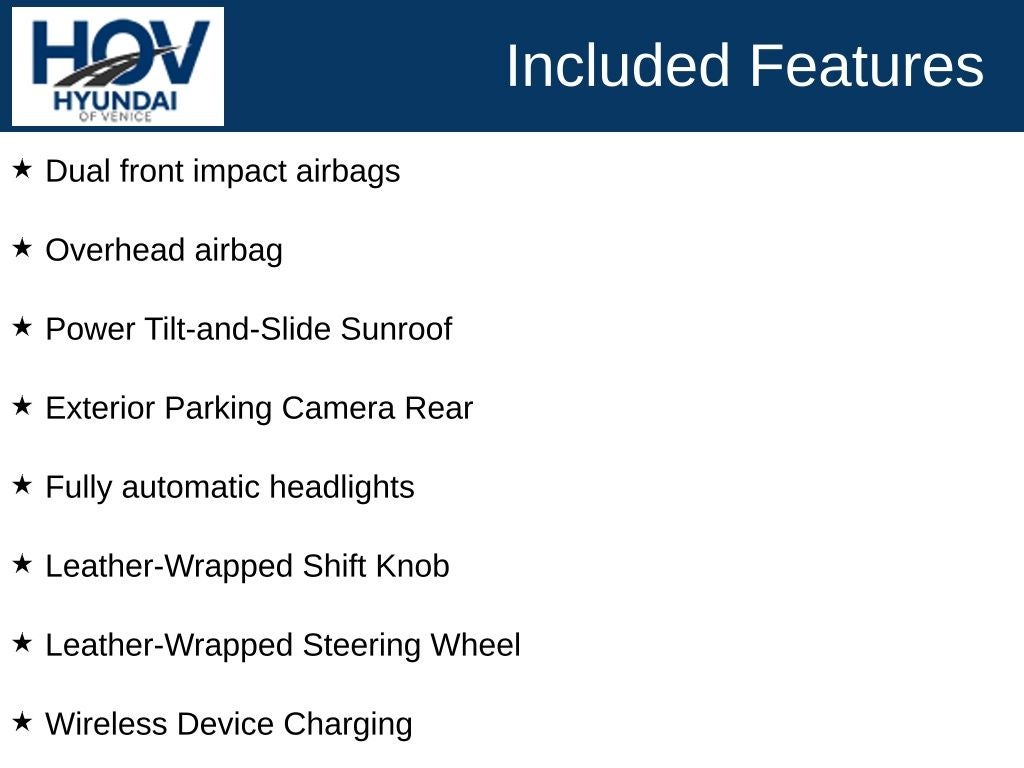All pricing assumes dealer arranged financing on approved credit. Retired Loaner Vehicle pricing may include all factory rebates and incentives.. Hyundai of Venice Platinum Protection Plan of $1,295 and $995 CPO Inspection charge (CPO Units only) is not included. Hyundai of Venice also offers various programs periodically, which are mutually exclusive and cannot be combined with other offers. A Dealer Fee of $1299.00, Electronic Titling Fee of $599.95, Private Tag Agency fee of $298.00, and applicable taxes, tags, and government fees are not included in the listed prices. While we strive to represent each vehicle accurately, including color, equipment, and options, we recommend verifying all details before purchase, as we are not liable for errors or omissions. To receive any advertised pricing or specials, a copy of the advertisement must be presented at the time of purchase. All prices are for immediate sale and vehicles are sold first come first served. We do not accept deposits to hold used vehicles.