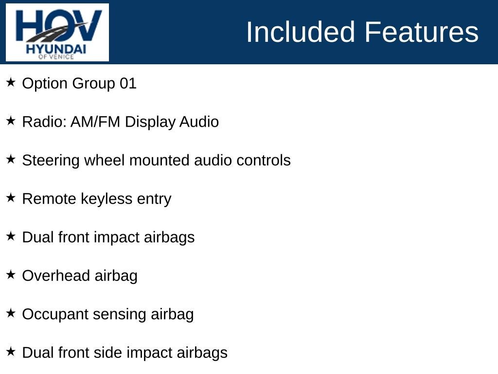 All pricing assumes dealer arranged financing on approved credit. Retired Loaner Vehicle pricing may include all factory rebates and incentives.. Hyundai of Venice Platinum Protection Plan of $1,295 and $995 CPO Inspection charge (CPO Units only) is not included. Hyundai of Venice also offers various programs periodically, which are mutually exclusive and cannot be combined with other offers. A Dealer Fee of $1299.00, Electronic Titling Fee of $599.95, Private Tag Agency fee of $298.00, and applicable taxes, tags, and government fees are not included in the listed prices. While we strive to represent each vehicle accurately, including color, equipment, and options, we recommend verifying all details before purchase, as we are not liable for errors or omissions. To receive any advertised pricing or specials, a copy of the advertisement must be presented at the time of purchase. All prices are for immediate sale and vehicles are sold first come first served. We do not accept deposits to hold used vehicles.