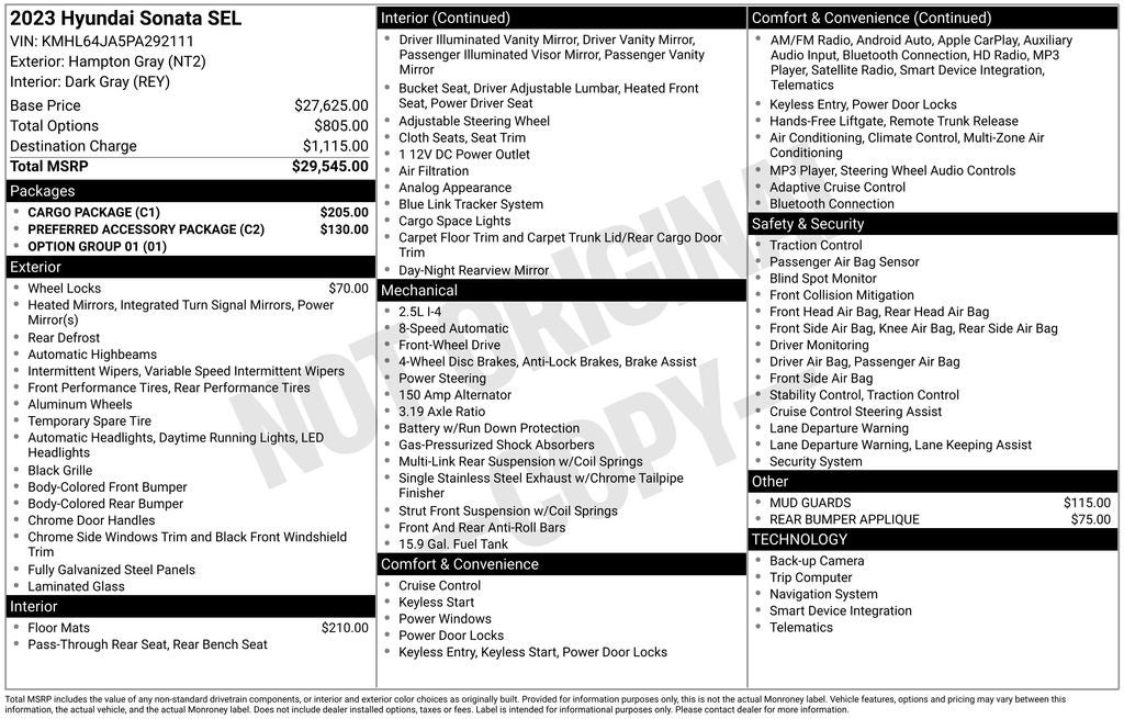 - Vehicle Name: Hyundai Sonata