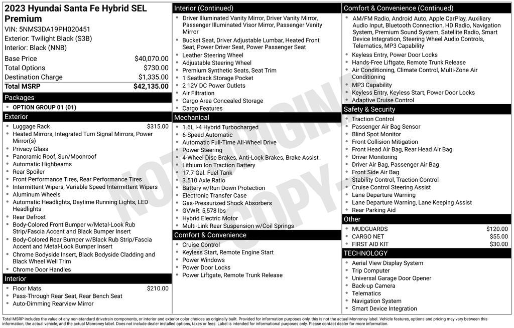 - Vehicle Name: Hyundai Santa Fe Hybrid
