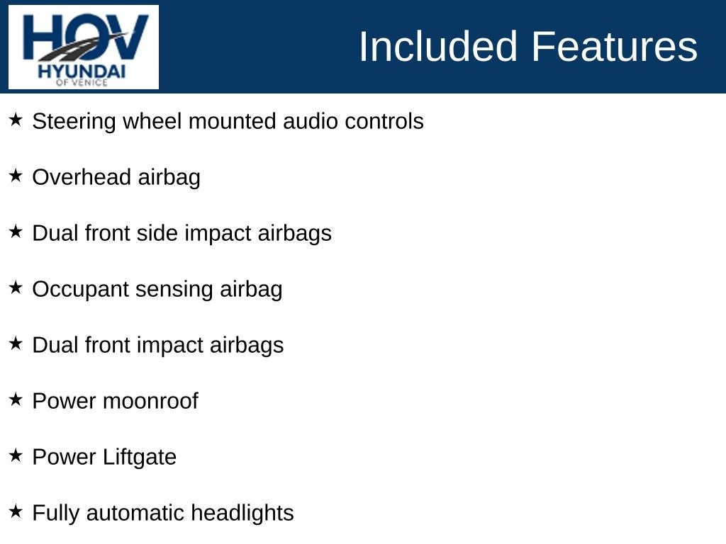 All pricing assumes dealer arranged financing on approved credit. Hyundai of Venice Platinum Protection Plan of $1,295 and $995 CPO Inspection charge (CPO Units only) is not included. Hyundai of Venice also offers various programs periodically, which are mutually exclusive and cannot be combined with other offers. A Dealer Fee of $1299.00, Electronic Titling Fee of $599.95, Private Tag Agency fee of $298.00, and applicable taxes, tags, and government fees are not included in the listed prices. While we strive to represent each vehicle accurately, including color, equipment, and options, we recommend verifying all details before purchase, as we are not liable for errors or omissions. To receive any advertised pricing or specials, a copy of the advertisement must be presented at the time of purchase.