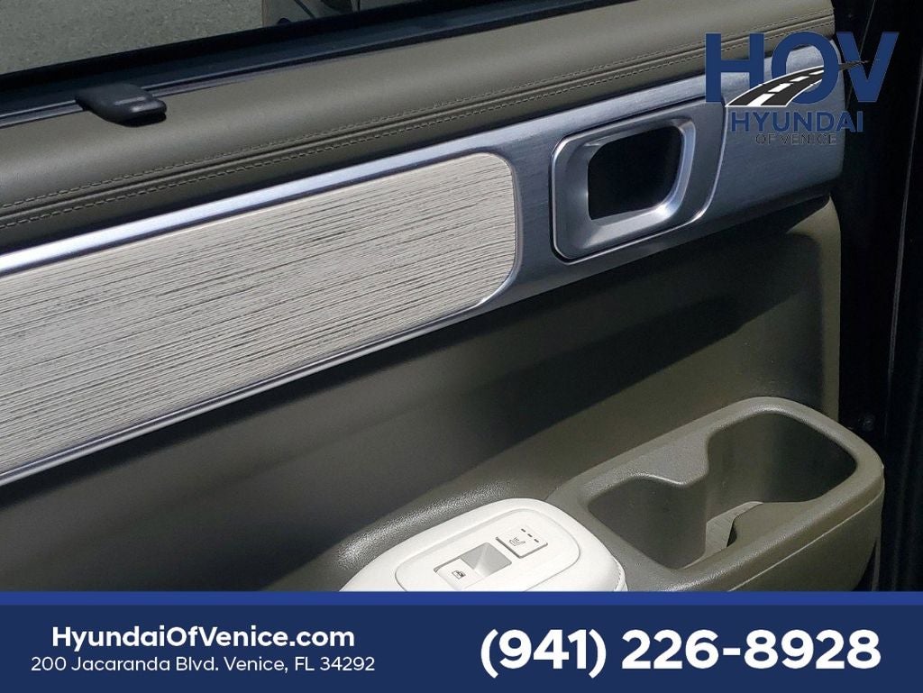 Certified. Phantom Black 2024 Hyundai Santa Fe Calligraphy Santa Fe Calligraphy, 4D Sport Utility, 2.5L I4, Shiftronic, AWD, Phantom Black, Forest Green/Beige Leather, 3rd row seats: bench, Apple CarPlay & Android Auto, Dual front impact airbags, Dual front side impact airbags, Heated & Ventilated Front Bucket Seats, Heated rear seats, Heated steering wheel, Knee airbag, Leather steering wheel, Navigation System, Power Liftgate, Power moonroof, Quilted Premium Nappa Leather Seat Trim, Radio: AM/FM/HD Bose Premium Audio System, Steering wheel mounted audio controls, Telescoping steering wheel, Tilt steering wheel, Wheels: 21 x 8.5J Unique Dark Finish Alloy. CARFAX One-Owner.