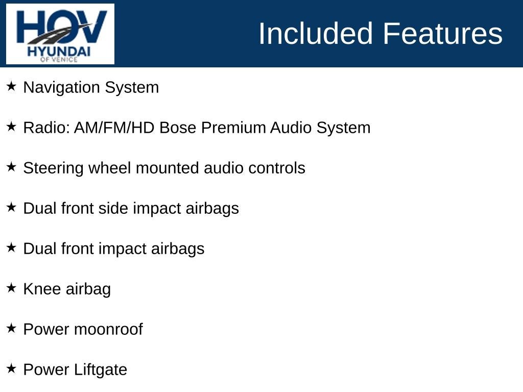 Visit our website at www.hyundaiofvenice.com for full pricing disclosures including required fees. Our new vehicles are priced using current market conditions and available manufacturer incentives to provide competitive, transparent pricing and include destination and handling and unless otherwise indicated, advertised prices INCLUDE $1,299 dealer fee, $599.95 electronic filing fee, and $298 private tag agency fee. Tax, tag, title, registration are excluded. Optional dealer-installed products, including the Hyundai of Venice Platinum Protection Plan ($1,295), are not included in the advertised price unless otherwise stated and are always optional. Retired Loaners pricing may reflect available incentives or programs from Hyundai Motor Finance. Not all customers will qualify, and offers may not be combined. Please contact the dealership for complete details and eligibility requirements. While we make every effort to ensure accuracy in vehicle descriptions, pricing, equipment, and availability, we recommend verifying all information with a member of our team prior to purchase, as errors or omissions may occur. All vehicles are offered for immediate sale and are sold on a first-come, first-served basis. Due to high demand, we do not hold used vehicles with deposits. To ensure eligibility for any advertised price or promotion, please refer to the specific advertisement at the time of purchase.