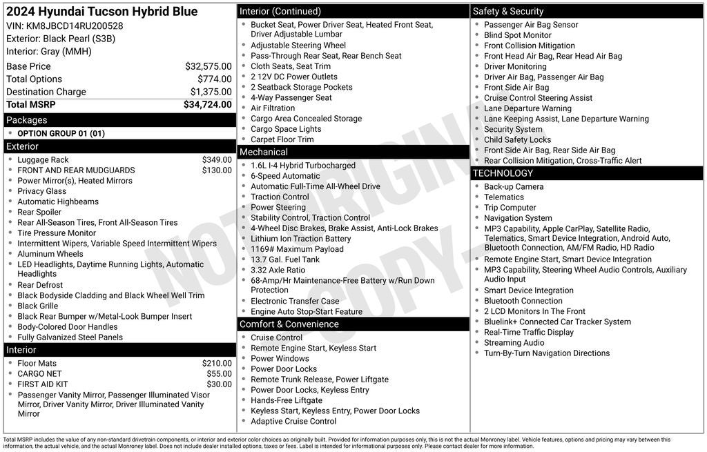 - Vehicle Name: Hyundai Tucson Hybrid