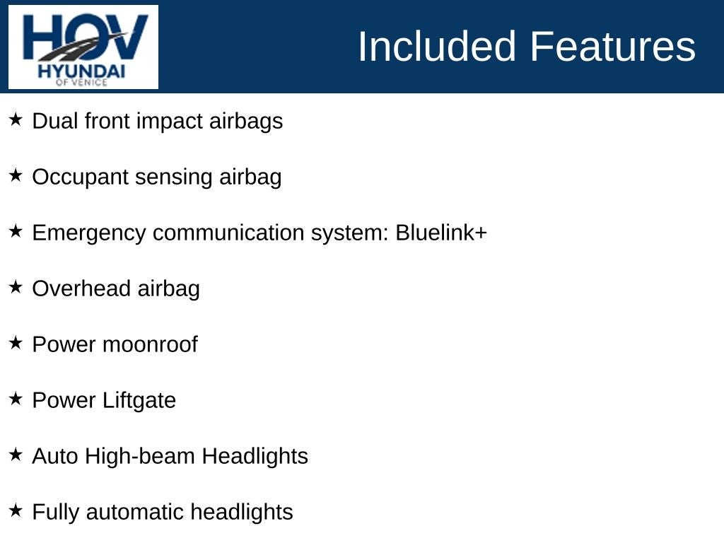 All pricing assumes dealer arranged financing on approved credit. Hyundai of Venice Platinum Protection Plan of $1,295 and $995 CPO Inspection charge (CPO Units only) is not included. Hyundai of Venice also offers various programs periodically, which are mutually exclusive and cannot be combined with other offers. A Dealer Fee of $1299.00, Electronic Titling Fee of $599.95, Private Tag Agency fee of $298.00, and applicable taxes, tags, and government fees are not included in the listed prices. While we strive to represent each vehicle accurately, including color, equipment, and options, we recommend verifying all details before purchase, as we are not liable for errors or omissions. To receive any advertised pricing or specials, a copy of the advertisement must be presented at the time of purchase.