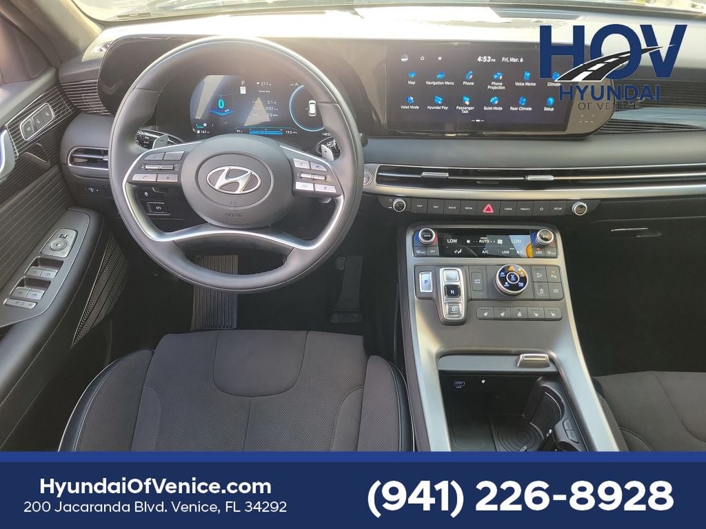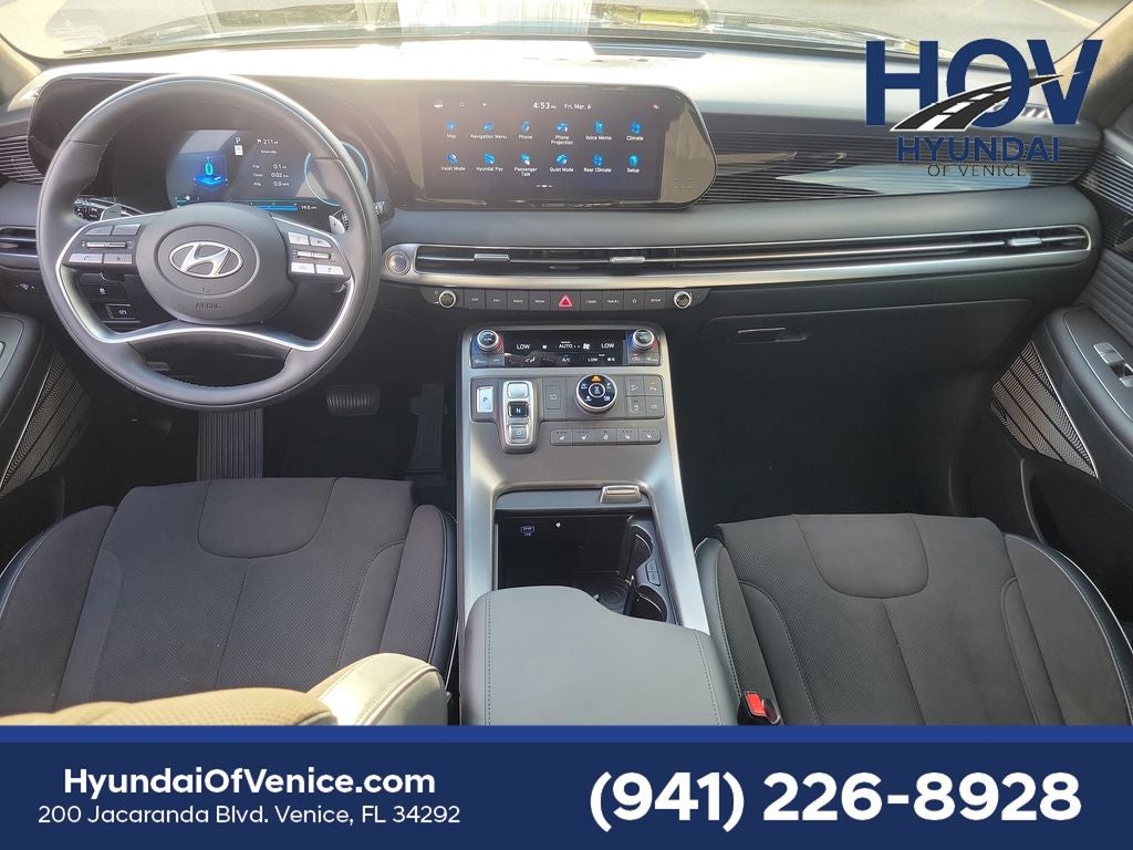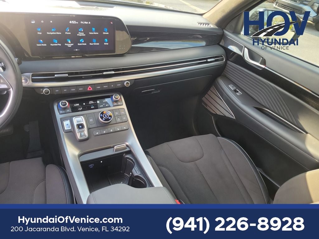 Certified. Abyss Black Pearl 2025 Hyundai Palisade Calligraphy Night Edition Apple CarPlay & Android Auto, Auto High-beam Headlights, Auto-dimming door mirrors, Auto-dimming Rear-View mirror, Automatic temperature control, Delay-off headlights, Dual front impact airbags, Dual front side impact airbags, Exterior Parking Camera Rear, Front dual zone A/C, Fully automatic headlights, harman/kardon® Speakers, Heads-Up Display, Heated & Ventilated Front Bucket Seats, Knee airbag, Memory seat, Navigation System, Occupant sensing airbag, Option Group 01, Overhead airbag, Power driver seat, Power Liftgate, Power moonroof, Power passenger seat, Radio: AM/FM/MP3 Premium Audio System, Rain sensing wipers, Rear air conditioning, Rear side impact airbag, Remote keyless entry, Steering wheel mounted audio controls, Telescoping steering wheel, Tilt steering wheel, Wheels: 20 x 7.5J Black Liquid Paint Alloy. CARFAX One-Owner.