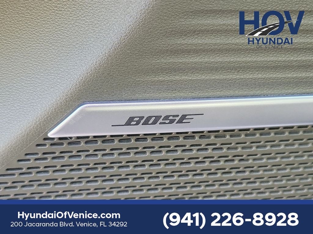 - Radio: AM/FM/HD Bose Premium Audio System -inc: 12 speakers including subwoofer, external amplifier, 12.3" wide touchscreen, Apple CarPlay and Android Auto, Bluetooth® hands-free w/wireless audio streaming, dynamic voice recognition, USB connectivity, SiriusXM, Blue Link+ connected car system, navigation system including traffic flow w/incident data via HD Radio (HERE) and rear seat quiet mode
