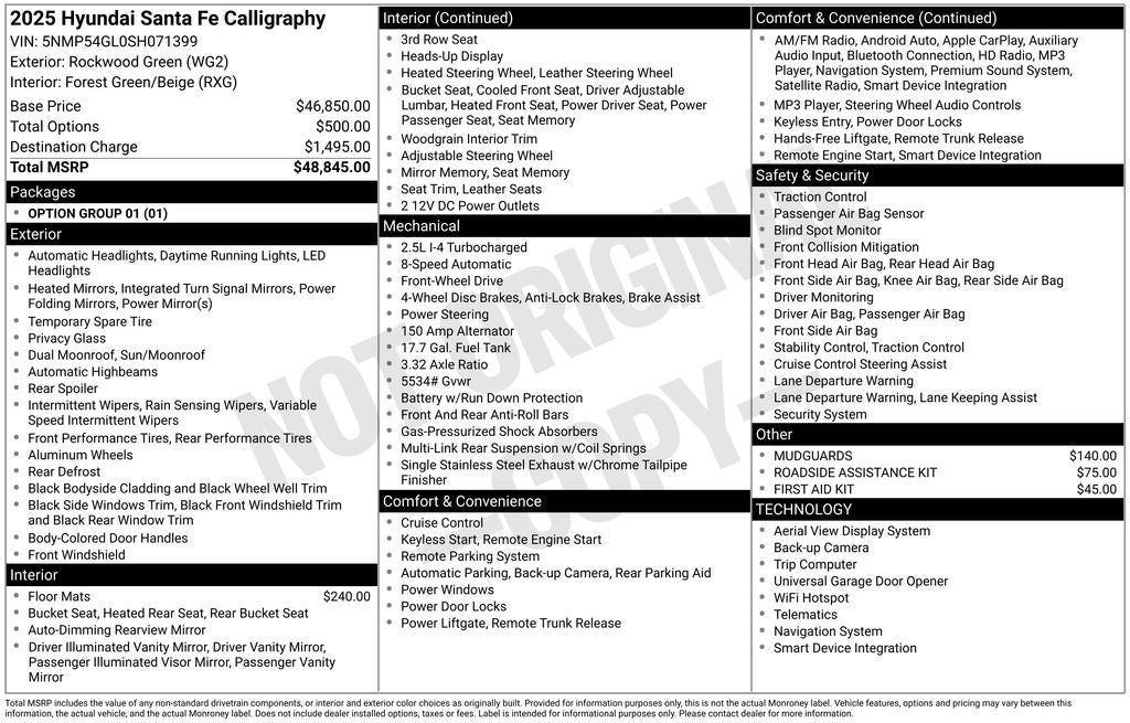 Rockwood Green 2025 Hyundai Santa Fe Calligraphy Clean CARFAX.