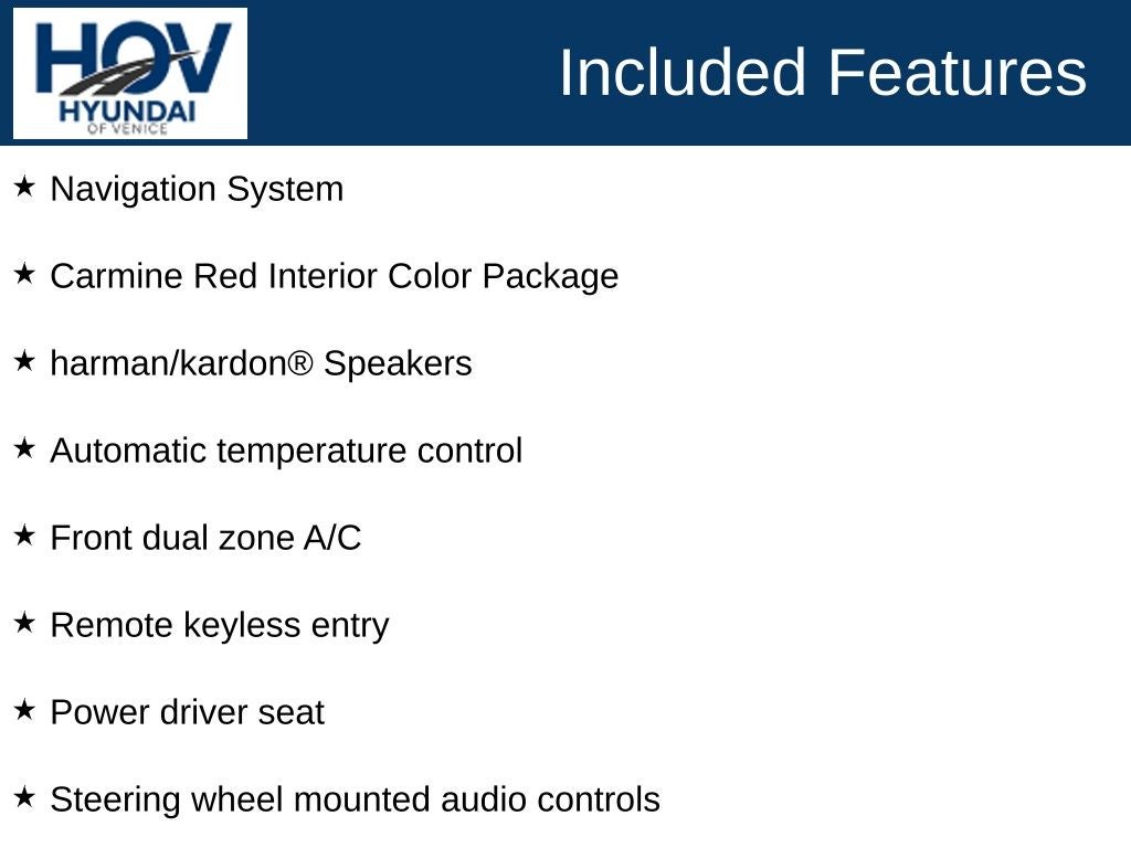 All pricing assumes dealer arranged financing on approved credit. Retired Loaner Vehicle pricing may include all factory rebates and incentives.. Hyundai of Venice Platinum Protection Plan of $1,495 and $995 CPO Inspection charge (CPO Units only) is not included. Hyundai of Venice also offers various programs periodically, which are mutually exclusive and cannot be combined with other offers. A Dealer Fee of $1299.00, Electronic Titling Fee of $599.95, Private Tag Agency fee of $298.00, and applicable taxes, tags, and government fees are not included in the listed prices. While we strive to represent each vehicle accurately, including color, equipment, and options, we recommend verifying all details before purchase, as we are not liable for errors or omissions. To receive any advertised pricing or specials, a copy of the advertisement must be presented at the time of purchase.